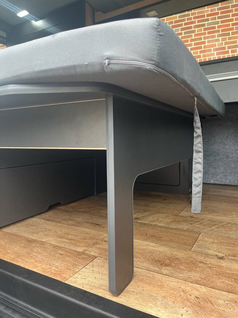 Die Sitzbank ist mit wenigen Handgriffen zur Schlafbank verwandelt